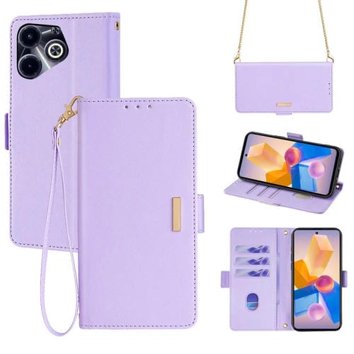 Funda de Cuero para Infinix Hot 40I 4G con Cadena Cruzada (Púrpura)