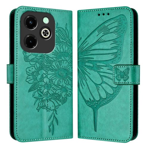 Funda de Cuero para Infinix Hot 40I con Mariposa en Relieve (Verde)