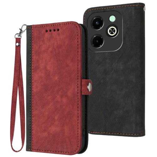 Funda para Infinix Hot 40I de Cuero con Correa de Mano, Doble Pliegue y Hebilla Lateral (Rojo)