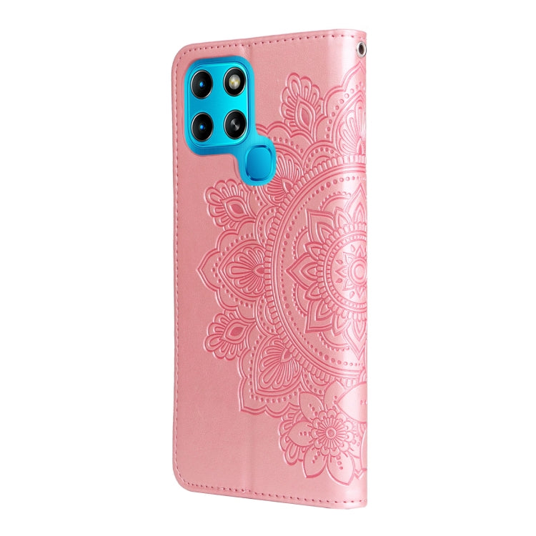 Estuche de Cuero en Relieve para Infinix Inteligente 6 Flores de 7 Pétalas (Oro Rosa)