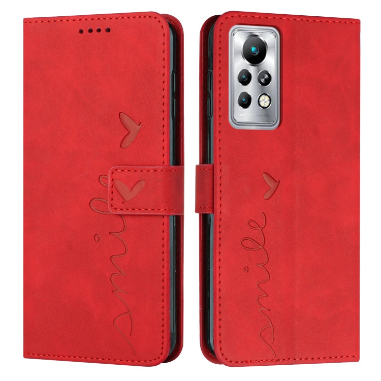 Estuche de Cuero para Infinix Nota 11 con Patrón de Corazón (Rojo)