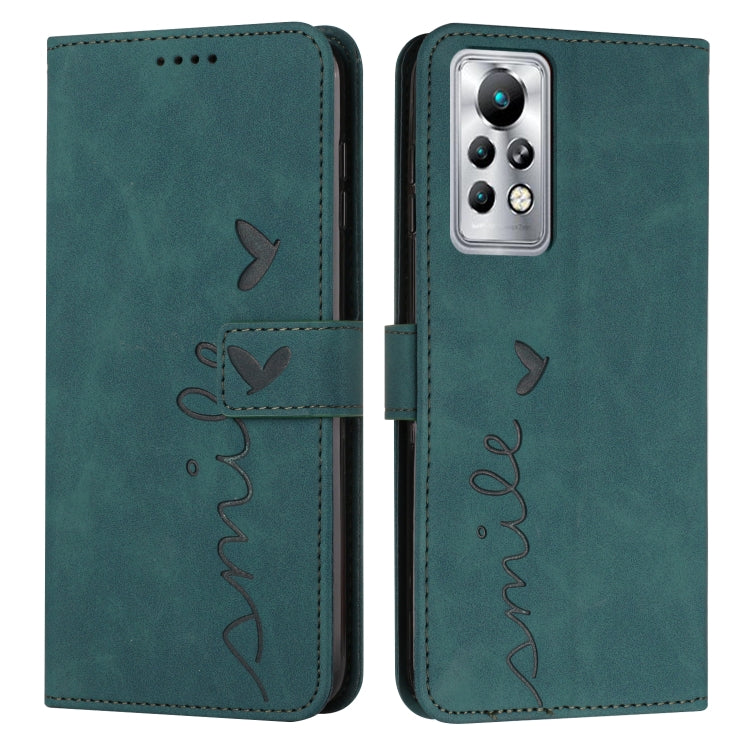 Estuche de Cuero para Infinix Nota 11 con Patrón de Corazón (Verde)