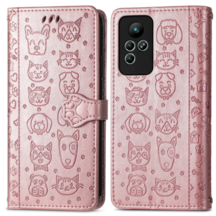 Estuche de Cuero En Relieve para Infinix Note 11 Cute Cat And Dog (Oro Rosa)
