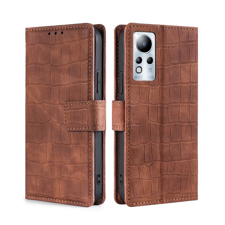 Funda de Cuero para Infinix Note 11 Skin Feel Cocodrilo con Cierre Magnético (Marrón)