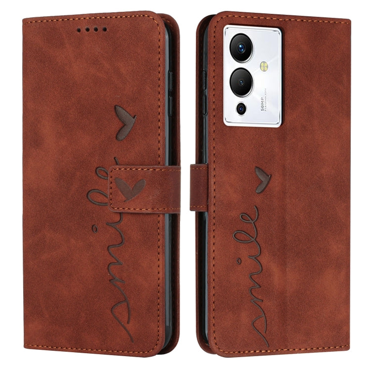 Funda de Cuero para Infinix Note 12/12 Pro Skin Feel con Diseño Heart Pattern (Marrón)