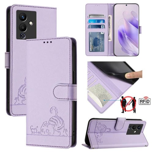 Estuche para Teléfono Infinix Note 12 5G Cuero Rfid con Patrón en Relieve y Cordón (Púrpura)