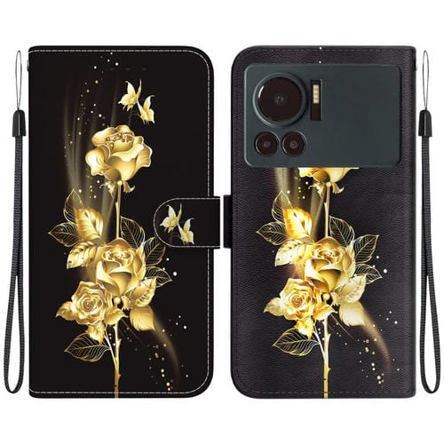 Funda de Cuero para Infinix Note 12 Vip con Dibujo Coloreado Mariposa Dorada Rosa Crystal Texture