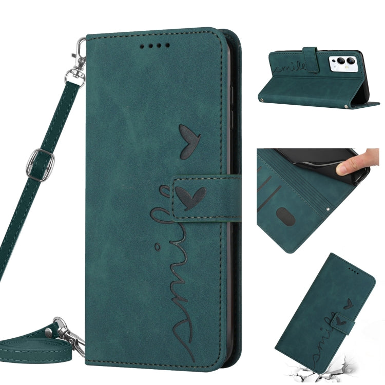 Funda de Cuero para Infinix Note 12I Skin Feel con Patrón Corazón y Cordón (Verde)