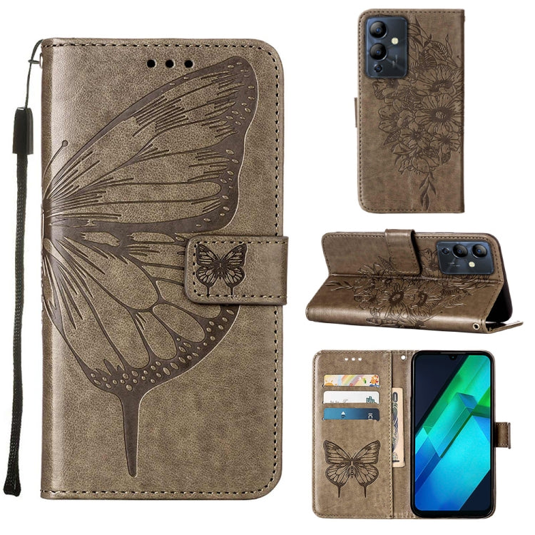 Estuche para Infinix Note 12I X6819 de Cuero con Tapa de Mariposa en Relieve (Gris)