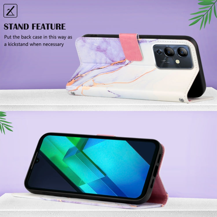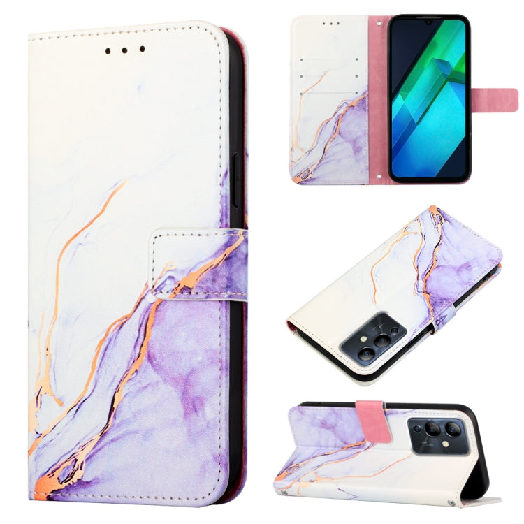 Funda de Teléfono Infinix Note 12I X6819 Pt003 con Tapa de Cuero y Patrón Mármol (Blanco Púrpura)