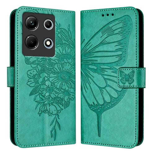 Funda de Cuero para Infinix Note 30 4G con Mariposa en Relieve (Verde)