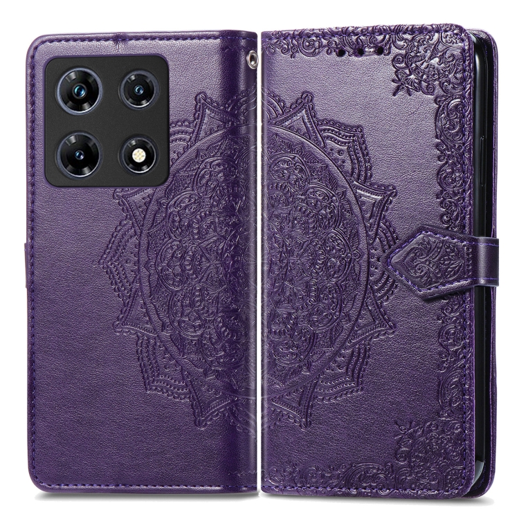 Funda de Cuero para Infinix Note 30 Pro con Relieve de Flores Mandala (Púrpura)