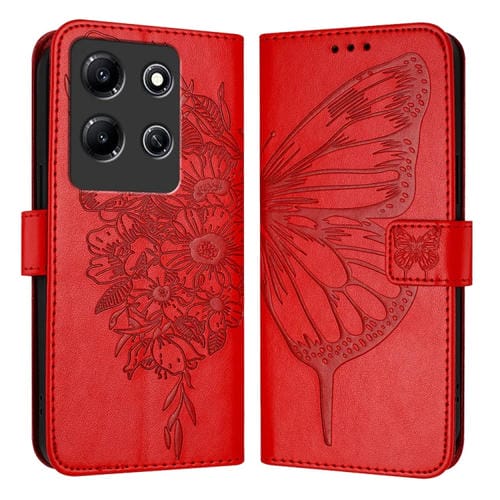 Funda de Cuero para Infinix Note 30I con Mariposa en Relieve (Rojo)