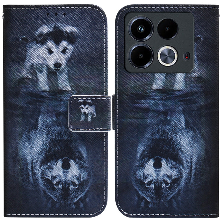 Funda de Cuero con Tapa para Infinix Note 40 4G con Dibujo Coloreado (Lobo y Perro)