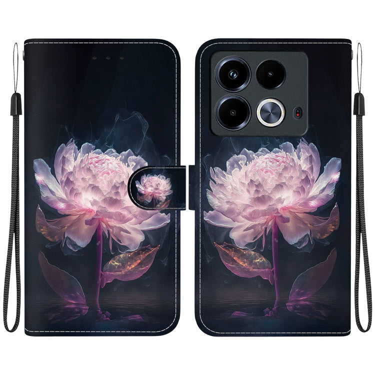 Funda de Cuero para Infinix Note 40 4G con Dibujo Coloreado y Textura de Cristal (Peonía Púrpura)