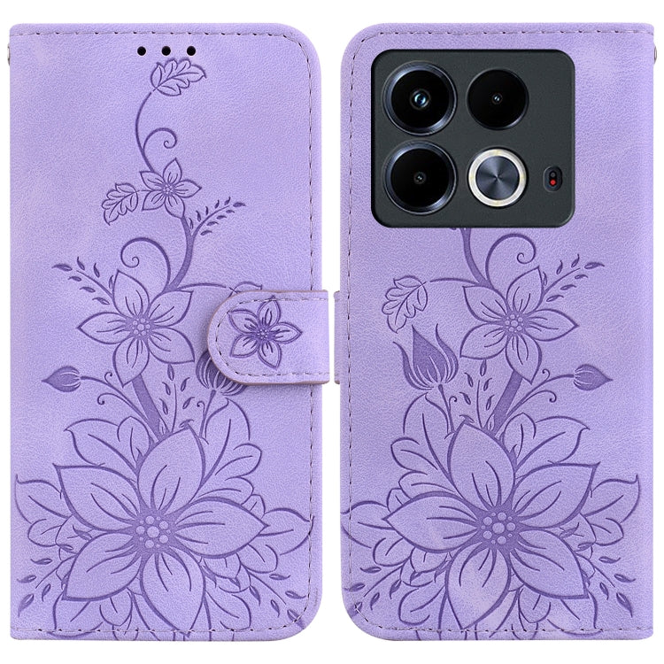 Funda para Infinix Note 40 4G Lily de Cuero En Relieve (Púrpura)