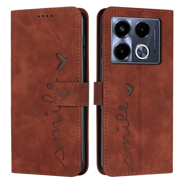 Funda para Infinix Note 40 5G Skin Feel Heart Cuero en Relieve con Cordón Largo (Marrón)