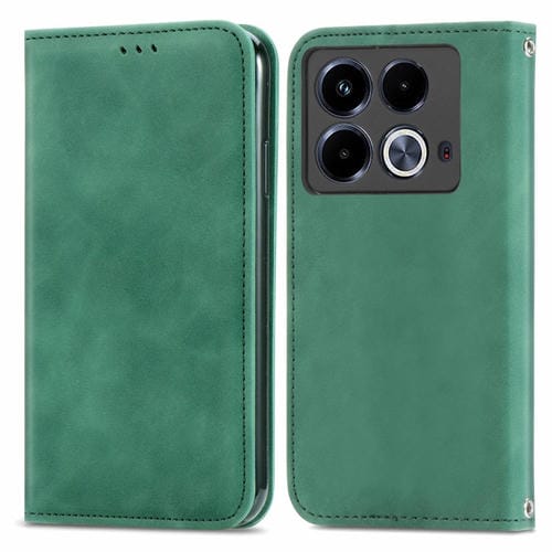 Funda de Teléfono Infinix Note 40 Cuero con Tapa Magnética y Sensación de Piel Retro (Verde)