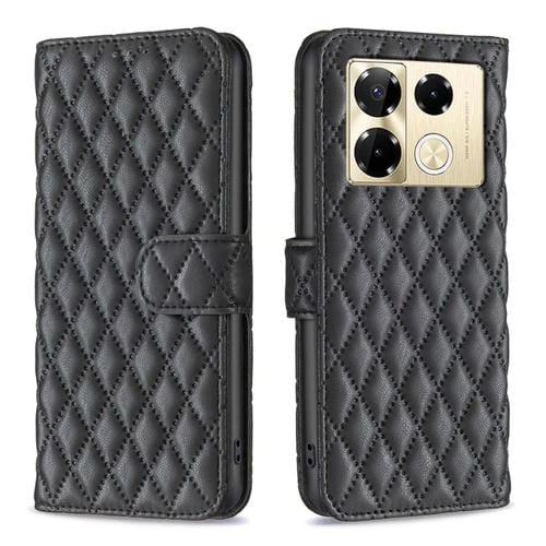 Funda de Cuero para Infinix Note 40 Pro 4G y 5G + 40 Pro + 5G Diamond Lattice con Tapa (Negro)
