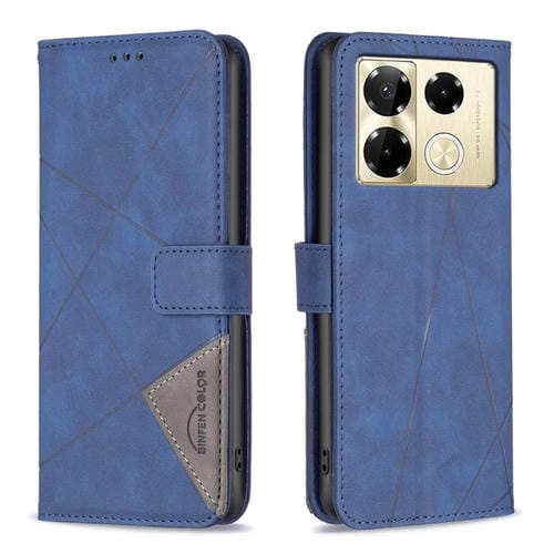 Funda para Infinix Note 40 Pro 4G/5G y 40 Pro+ 5G Cuero Textura Rombo Hebilla Magnética (Azul)