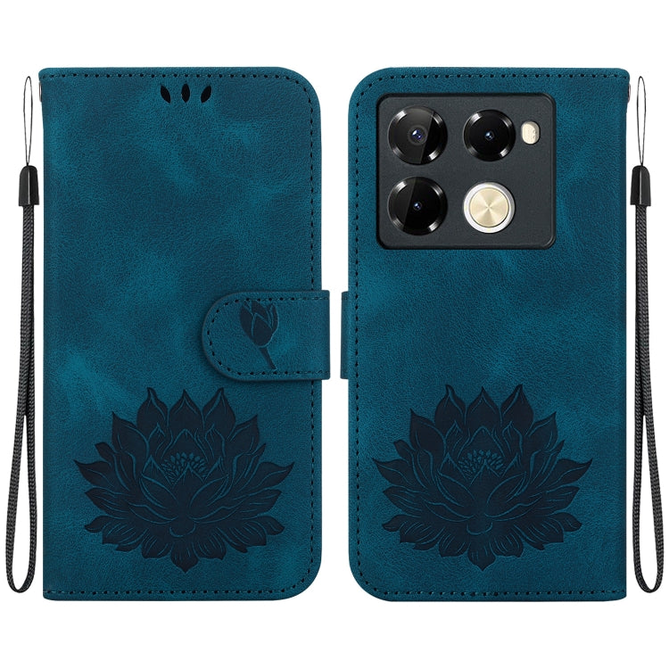 Funda de Cuero para Infinix Note 40 Pro 4G/5G con Relieve de Loto (Azul Oscuro)