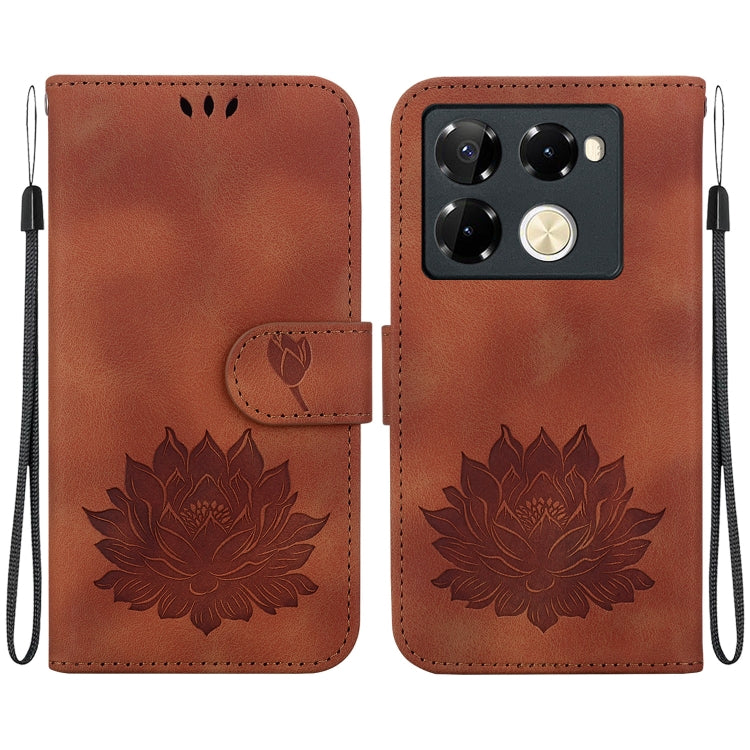 Funda de Cuero Infinix Note 40 Pro 4G / 5G con Relieve de Loto (Marrón)