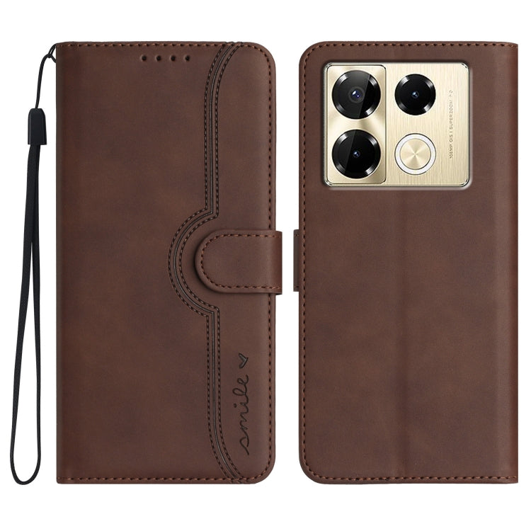 Funda de Cuero para Infinix Note 40 Pro 4G y 5G con Patrón de Corazón (Marrón)