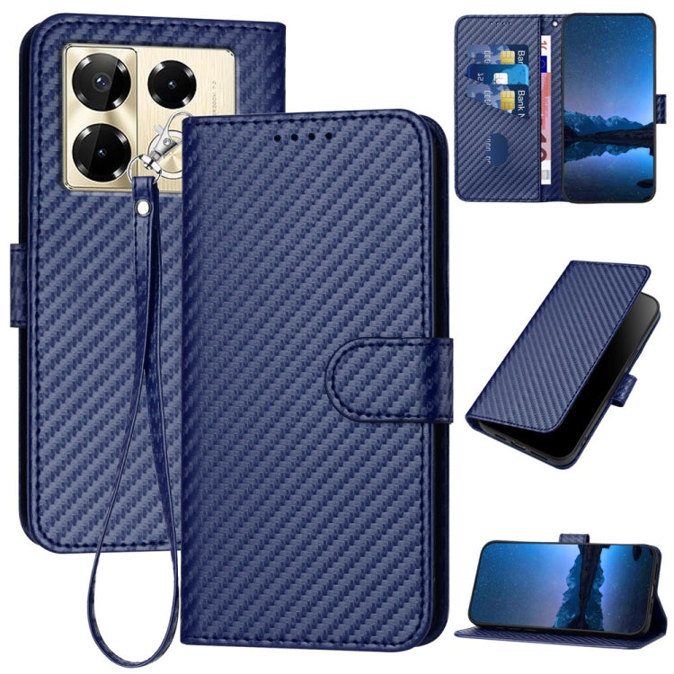 Funda de Cuero para Infinix Note 40 Pro 4G y 5G Yx0070 con Hebilla de Fibra de Carbono y Cordón (Azul Real)