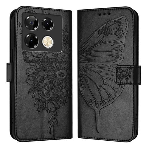 Funda de Cuero para Infinix Note 40 Pro 5G con Mariposa en Relieve (Negro)