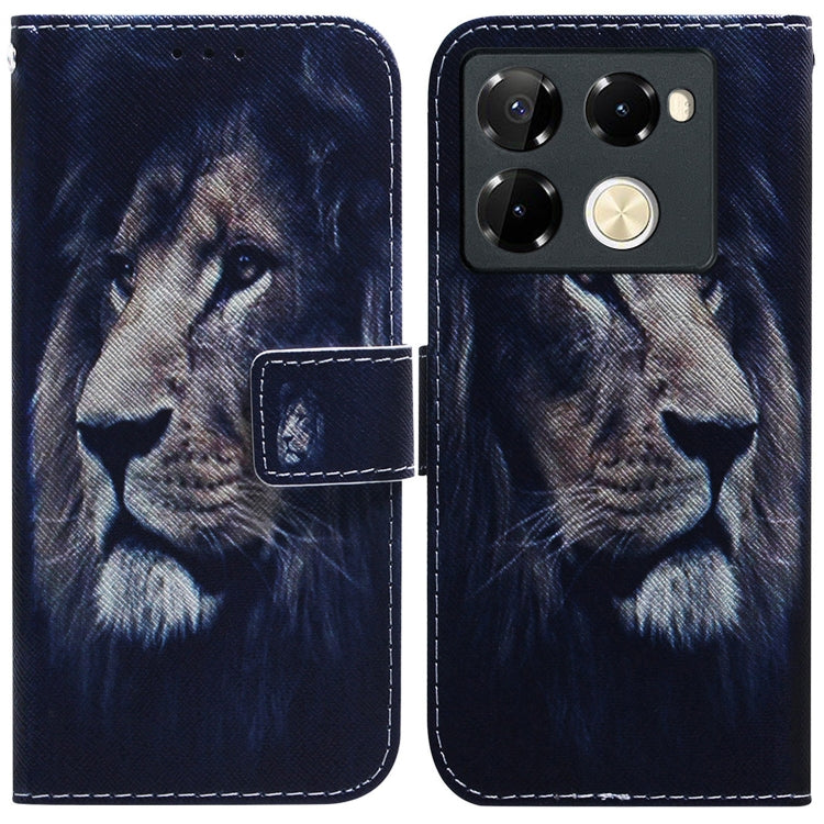 Funda de Cuero con Tapa para Infinix Note 40 Pro + 5G con Dibujo Coloreado (León)