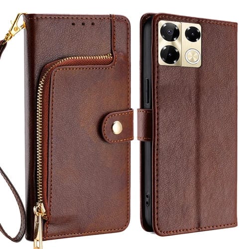 Funda de Cuero para Infinix Note 40 Pro 5G con Bolsa y Cremallera (Marrón)