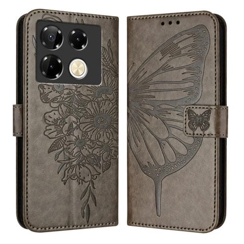 Funda de Cuero para Infinix Note 40 Pro 5G con Mariposa en Relieve (Gris)