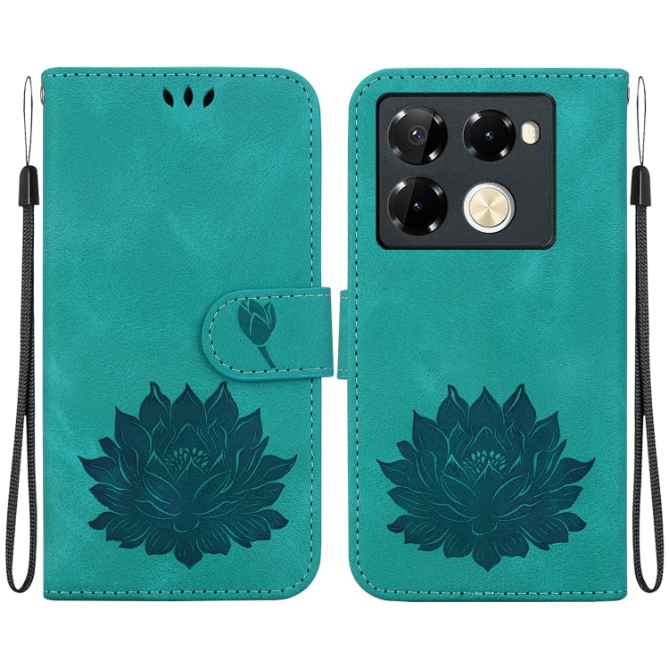 Funda de Cuero con Relieve de Loto para Infinix Note 40 Pro (Verde)