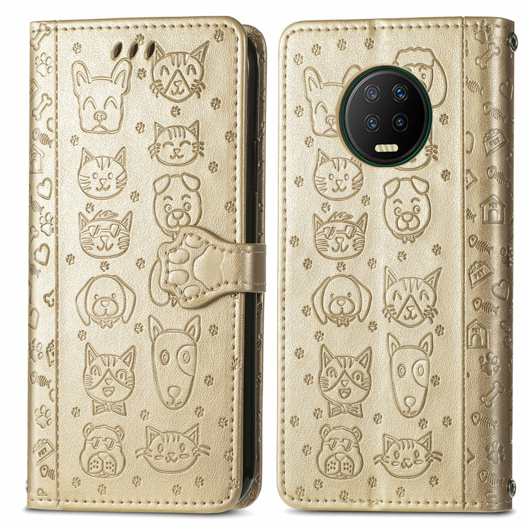 Estuche de Cuero para Infinix Note 7 con Soporte, Tragamonedas, Billetera y Cordón (Oro)