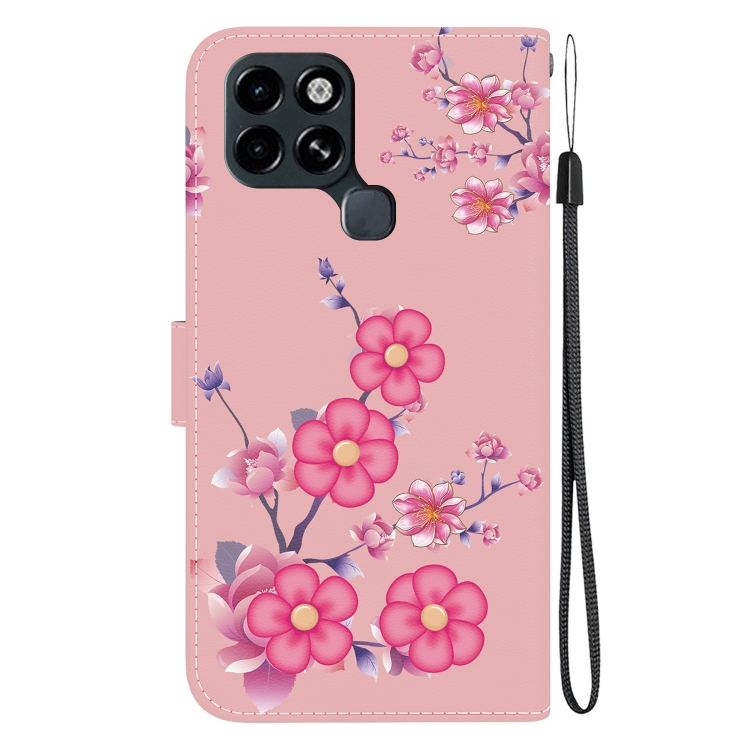 Funda de Cuero para Infinix Smart 6 con Dibujo Coloreado y Textura de Cristal (Flores de Cerezo)