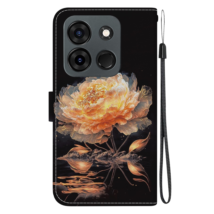 Funda de Cuero para Infinix Smart 7 con Dibujo Coloreado y Textura de Cristal Indio (Peonía Dorada)