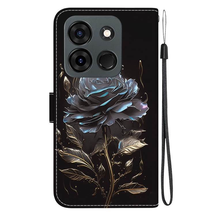 Funda de Cuero para Infinix Smart 7 con Dibujo Coloreado y Textura de Cristal Indio (Rosa Negra)