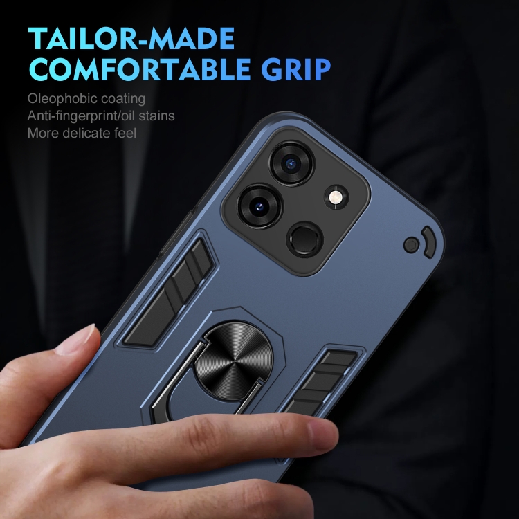 Funda para Infinix Smart 7 con Soporte de Anillo de Metal a Prueba de Golpes (Azul)