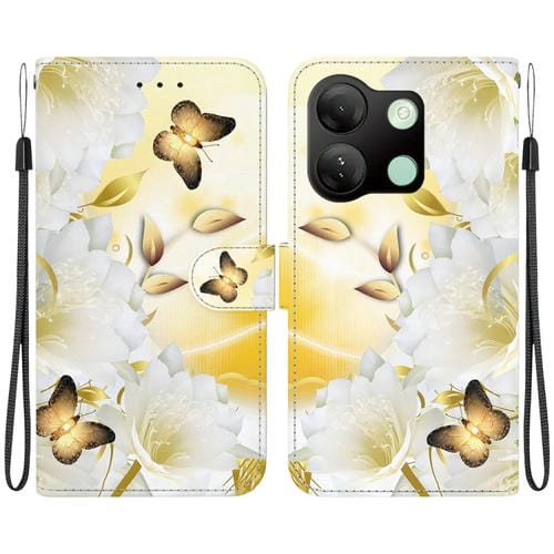 Funda de Cuero para Infinix Smart 7 HD con Dibujo Coloreado y Textura de Cristal (Epiphyllum de Mariposa Dorada)