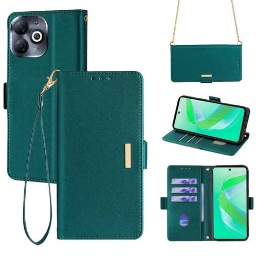 Funda de Cuero para Infinix Smart 8 4G con Cadena Cruzada (Verde)