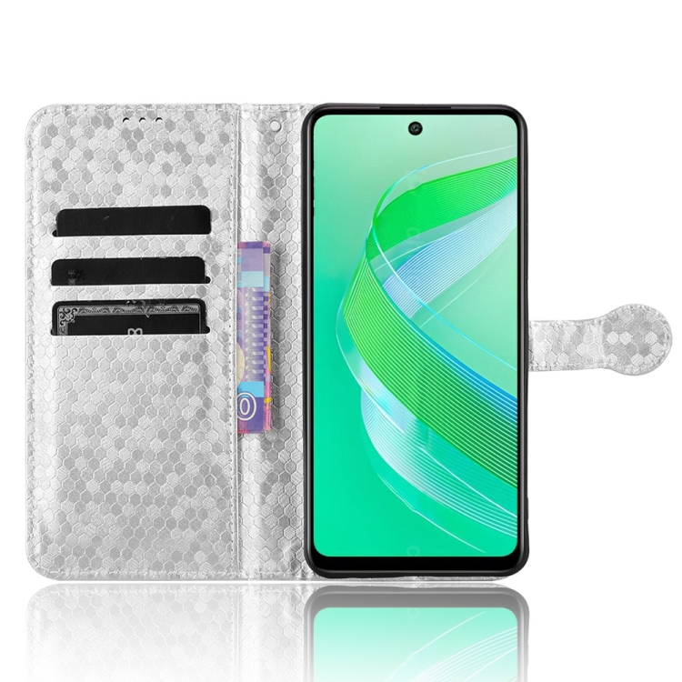 Funda de Cuero para Infinix Smart 8 con Textura de Punto de Panal (Plata)