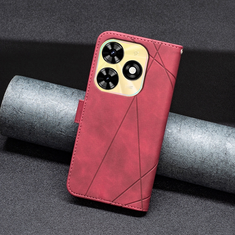 Funda para Infinix Smart 8 de Cuero con Textura de Rombo y Hebilla Magnética (Rojo)