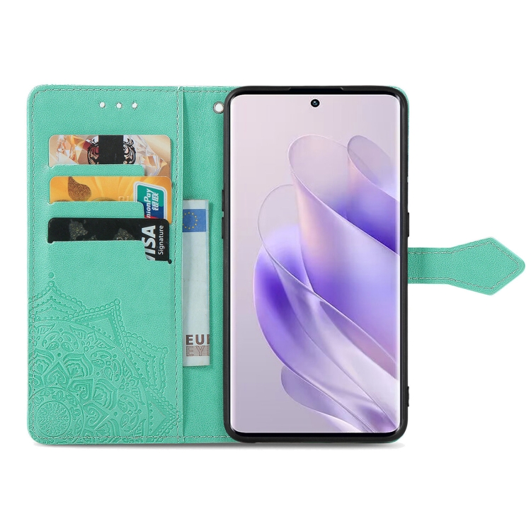 Funda de Cuero para Infinix Zero 30 4G con Relieve de Flor de Mandala (Verde)