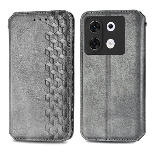 Funda de Teléfono Infinix Zero 30 5G Cubic Grid Cuero Magnético Prensado (Gris)