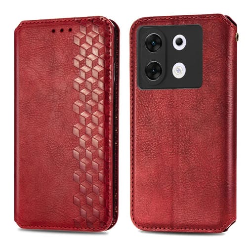 Funda de Cuero Magnético Prensado para Infinix Zero 30 5G Cubic Grid (Rojo)