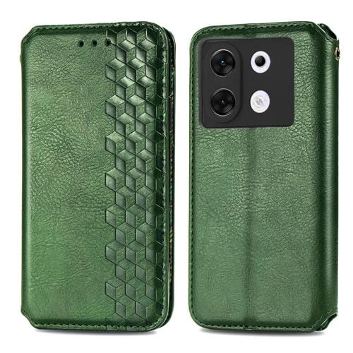 Funda de Cuero Magnético Prensado para Infinix Zero 30 5G Cubic Grid (Verde)