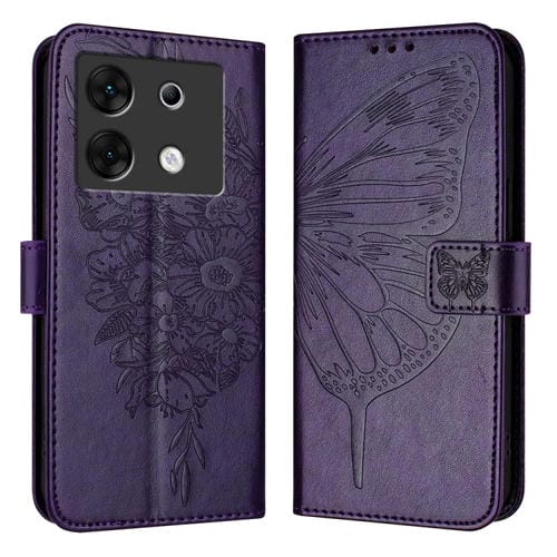 Funda de Cuero para Infinix Zero 30 5G con Mariposa en Relieve (Púrpura Oscuro)
