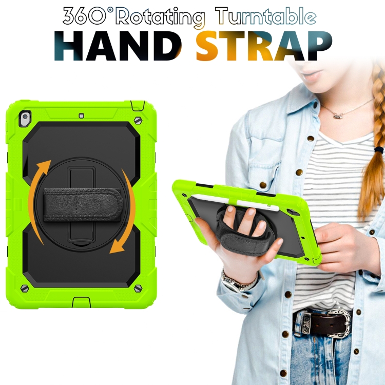 Funda Protectora Silicona + PC para iPad 10.2 2021 2020 2019 con Soporte Correa y Ranura (Amarillo Verde)
