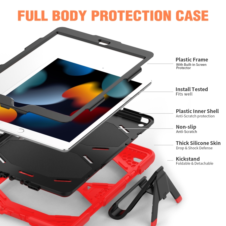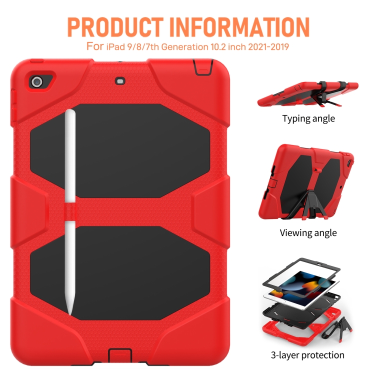 Funda Protectora para iPad 10.2 2021 / 2020 / 2019 Silicona + PC Soporte Ranura Bolígrafo (Rojo)