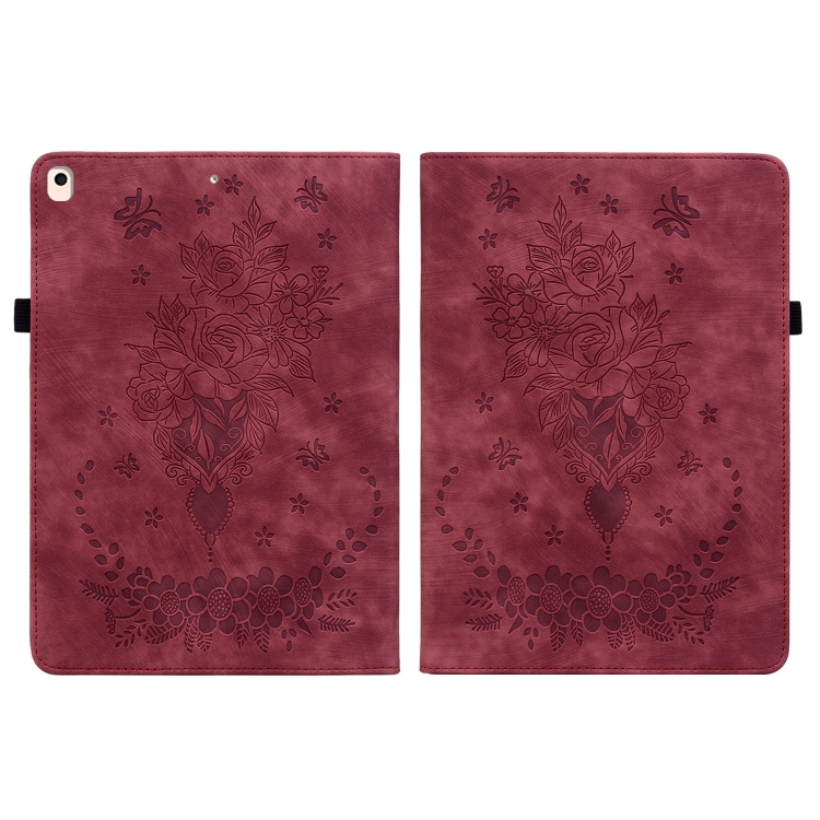 Estuche para Tableta iPad 10.2 (2021) / Air 10.5 (2019) Cuero En Relieve Butterfly Rose (Rojo)
